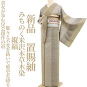 置賜紬(おいたまつむぎ)は、この地方で生産されている織物すべての総称。江戸時代初めに上杉景勝が奨励したことが産地の起源とされています。素朴で伝統的な技法を用いた白鷹板締小絣(しらたかいたじめこがすり)、米琉板締小絣(よねりゅういたじめこがすり)、緯総絣、併用絣及び紅花等で染色する草木染紬等があります。いずれも糸を先に染めてから織る先染めの平織(ひらおり)です。