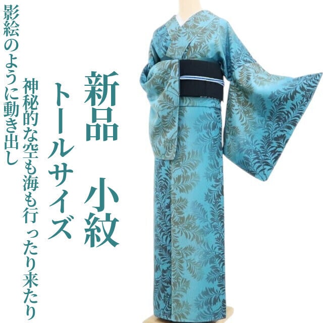 新品 着物 正絹 トールサイズ 仕付け糸付“影絵のように動き出し、神秘的な空も海も行ったり来たり”小紋 4291