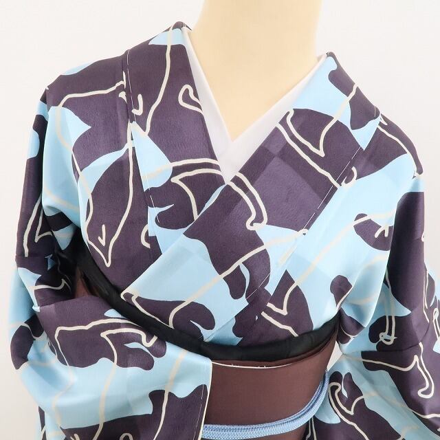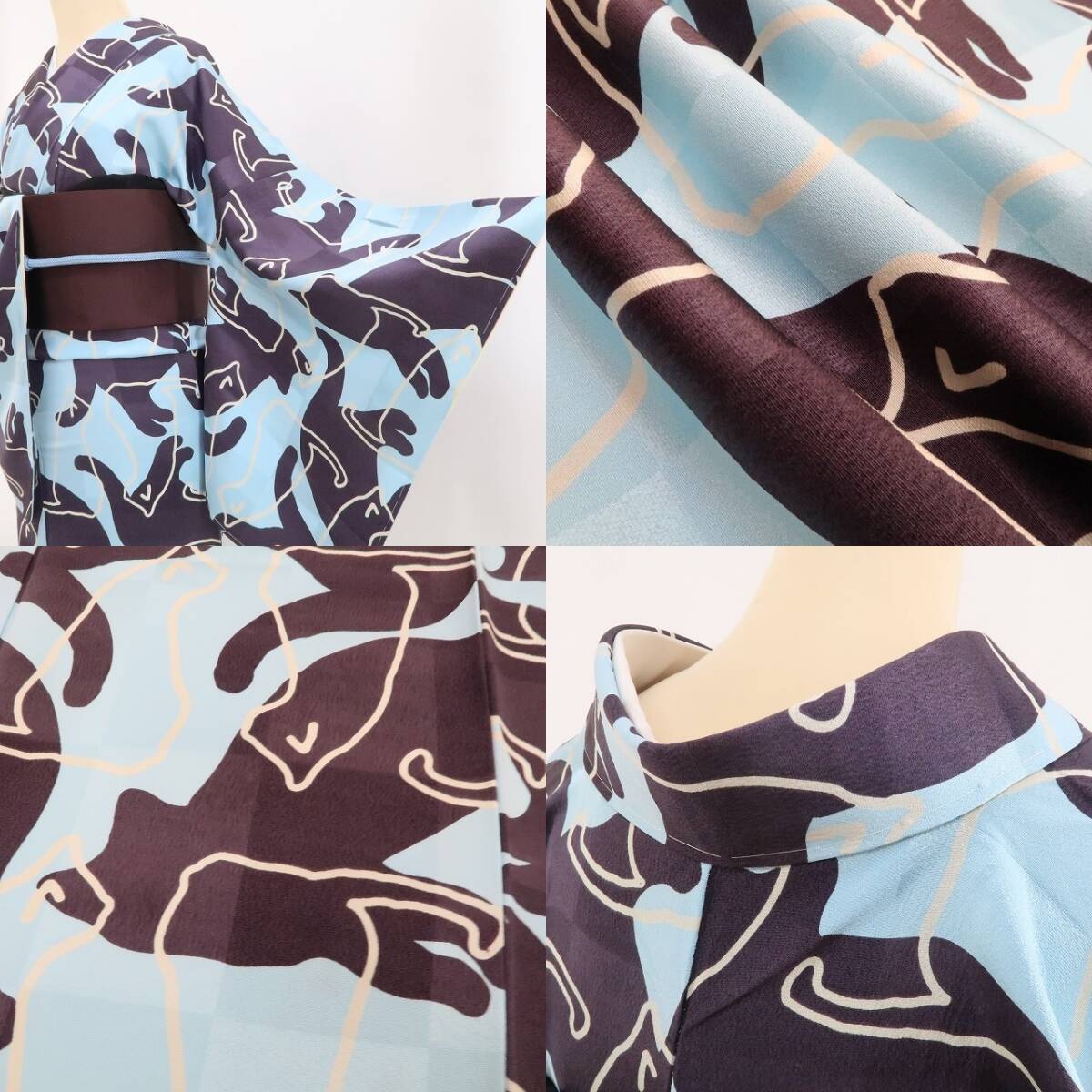 光沢のある浅縹色にもふもふしたくなる姿が大集合、そしてもう一つの愛らしいシルエットが浮かび上がり、その二つの違う雰囲気で吹き込んだ愛おしい姿で視覚を楽しませながら猫好きさんの心をぐっと引き寄せ、一味違うセンスと遊び心で貴女を包み込む、“猫”胴抜き仕立て正絹 仕付け糸付小紋です。