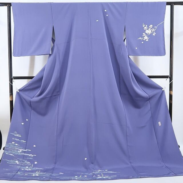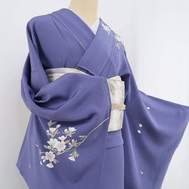 品よく漂う紅桔梗色に段々とリズムを奏でる洒落た霞、ほんのりと頬を染めひらりひらりと舞い散る花びらに新鮮な芽吹きも顔を出し始めるひと時の美しさを捉え、着姿は勿論、所作の一つ一つを情緒豊かに飾る、本加賀友禅 牧野顕三 落款“行く春”桜正絹 仕付け糸付訪問着でございます。