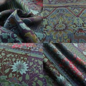 更紗は、緞子・金襴・銀蘭・間道・錦・モール・風通などとともに中国の他・東南アジア・インド・ペルシアを起源とする絹織物の呼び名のひとつで、日本では室町時代に中国との貿易により名物裂として伝来しました。また、更紗模様のモチーフは、草花や鳥・獣・人物のほかに幾何学模様など多岐に渡り、特に固定されたものはありません。16世紀末のインドで極上多彩の木綿布をsarasoまたsarassesと呼んだところからついた名と言われています。