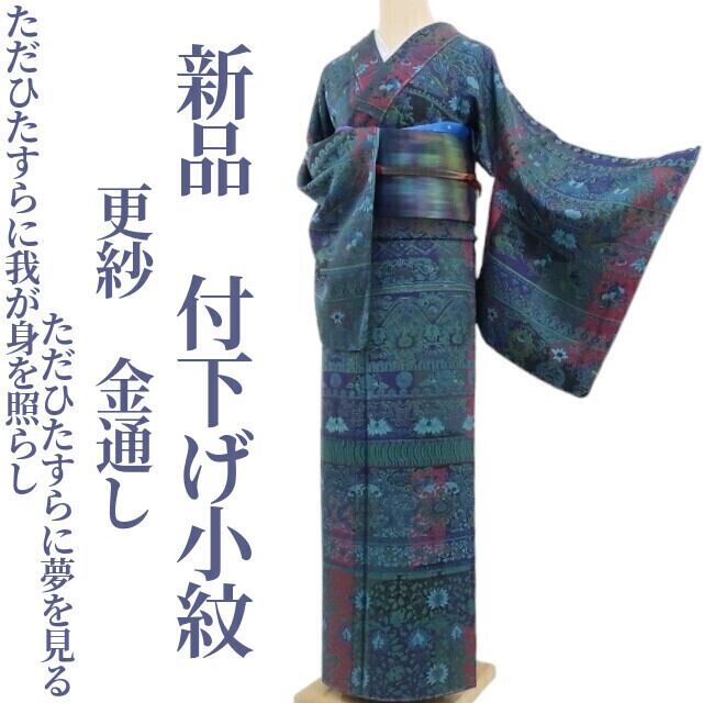 新品 更紗 金通し 着物 正絹“ただひたすらに我が身を照らし…ただひたすらに夢を見る”仕付け糸付 付下げ小紋 4347