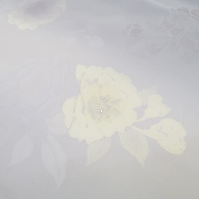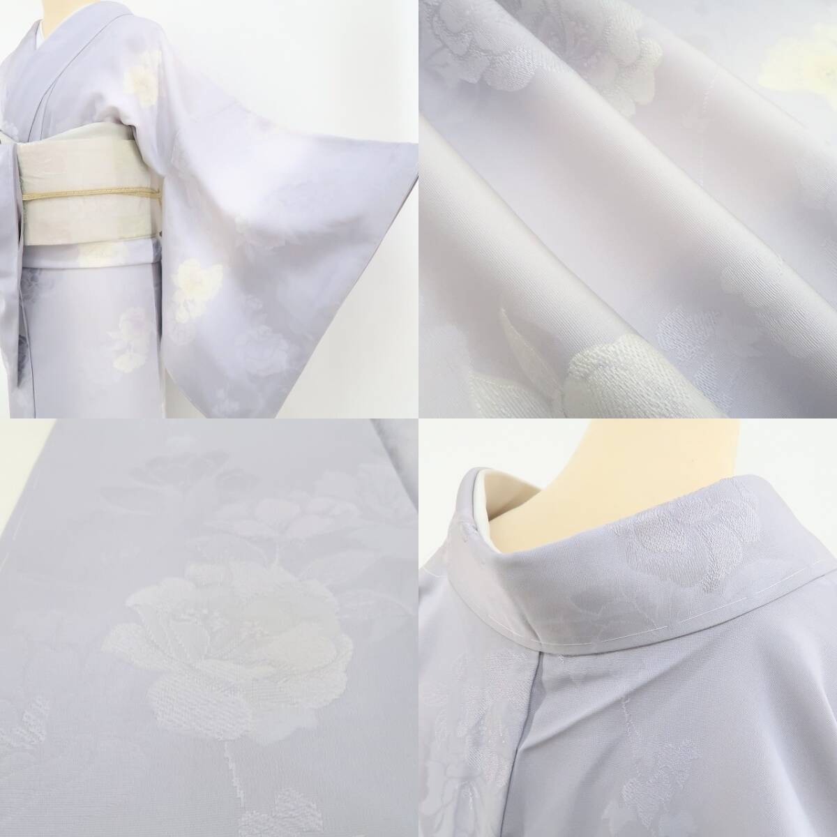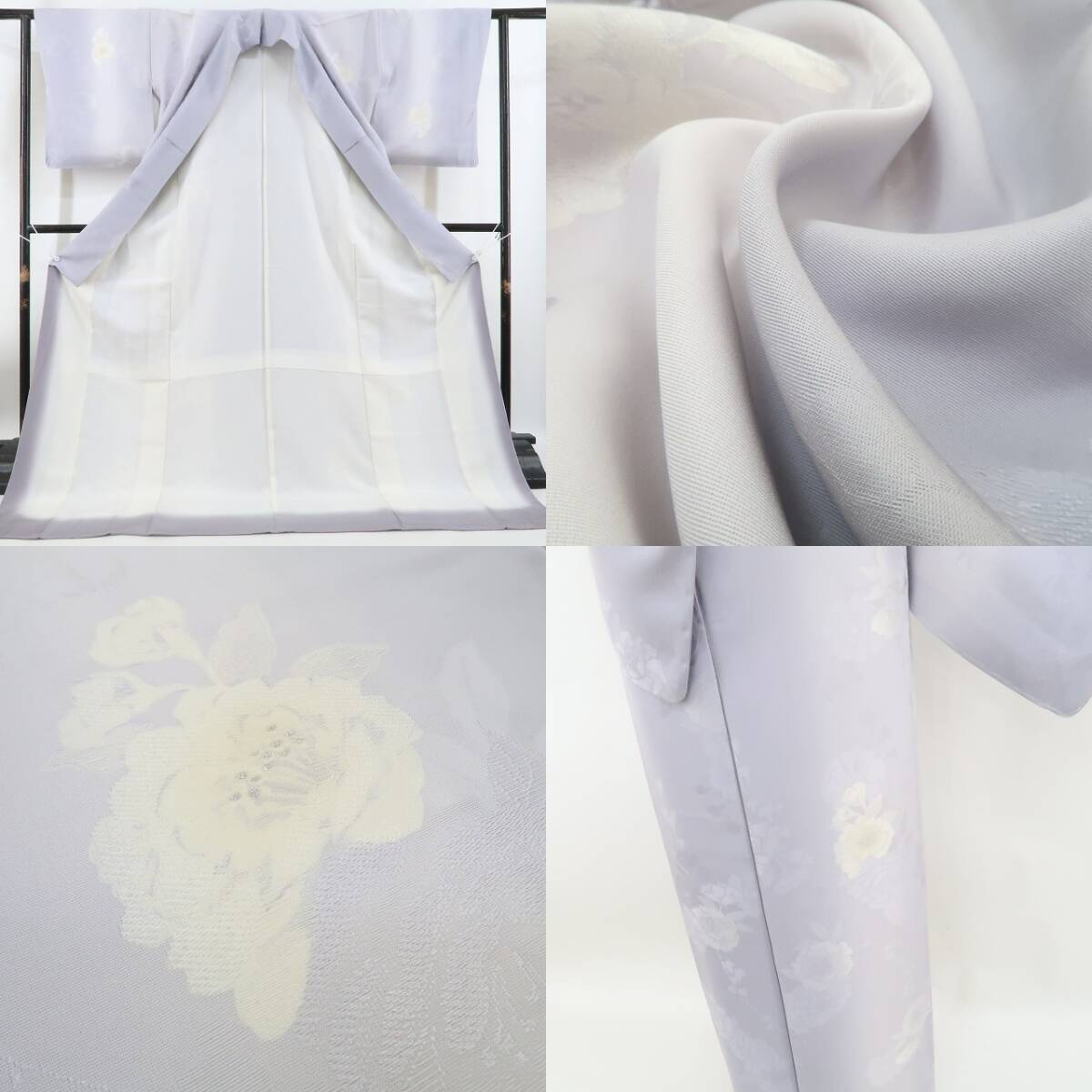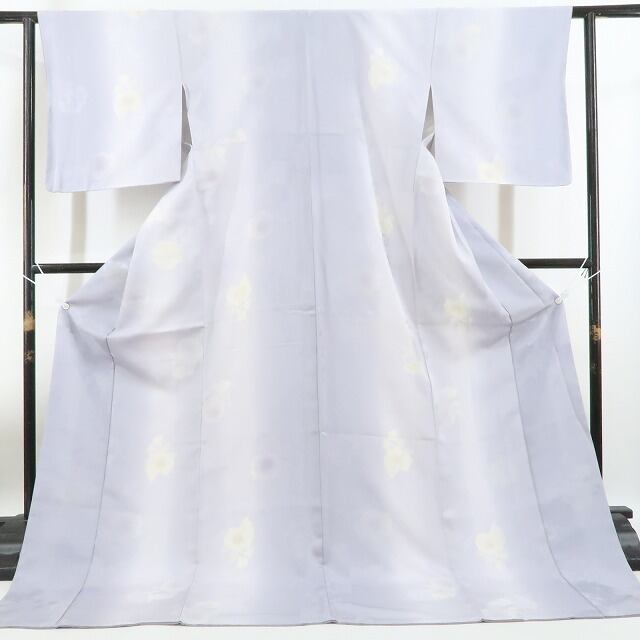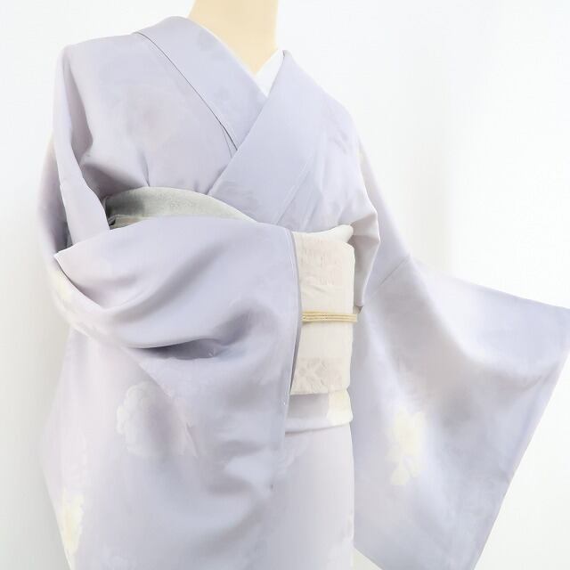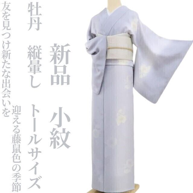 新品 牡丹 縦暈し 着物 正絹 仕付け糸付 トールサイズ“友を見つけ、新たな出会いを迎える藤鼠色の季節”小紋 4407