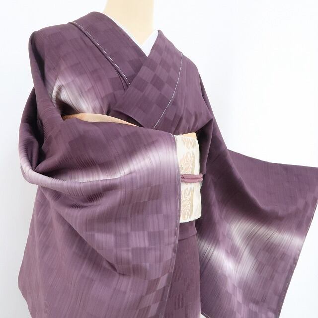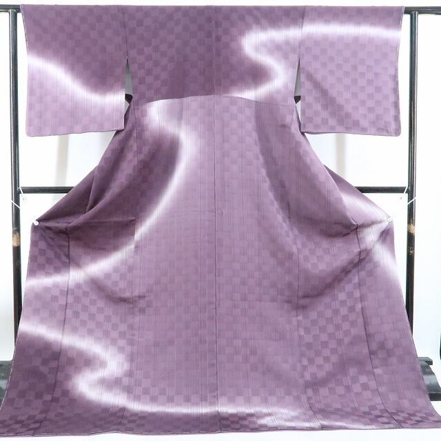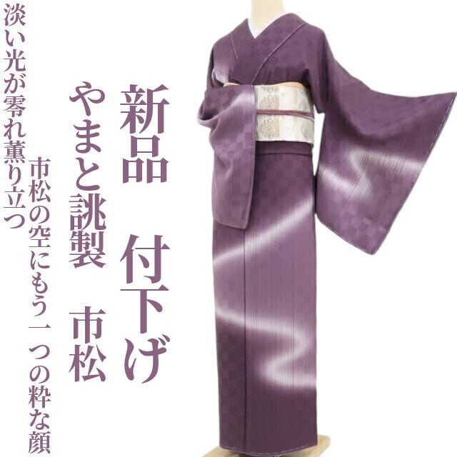 新品 やまと誂製 市松 着物 正絹 仕付け糸付“淡い光が零れ薫り立つ市松の空にもう一つの粋な顔”付下げ 4495