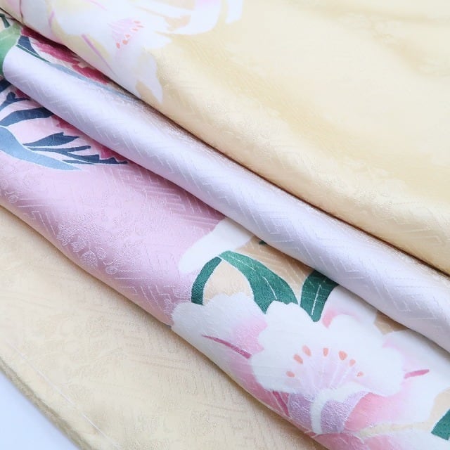 こちらのお着物は、ライトトーンの彩色に構図を意識したデザイン性の高い花寄せ文を込めております。阿部佳雪ならではの丁寧な色付けも魅力、大人びてさりげなく…十日町友禅ならではの美しさが趣豊かに表現されています。