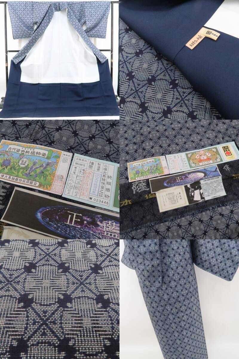 過去から現代へと続く伝統の技、それは“時を超え歴史を綴る絣の守り人”、久野織物謹製/ますいわ屋扱い/カタス式/9マルキ/藍染の本場大島紬…証紙付のお品でございます。