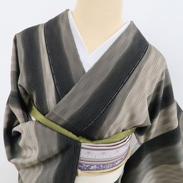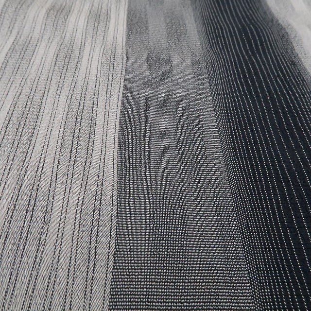 シックな黒と白橡色の色使いに大人びた視覚インパクトを残す縦縞状のラインデザイン、本しぼ渋染めの色味が創り出す唯一無二の自然な風合い、それは正に“白川貞夫”が繋ぐ志の道…見事です。