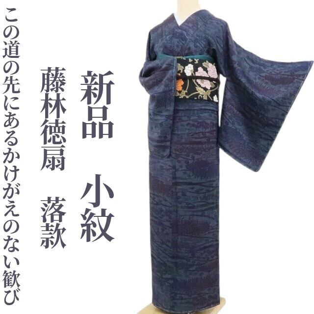 新品 藤林徳扇 落款 着物“この道の先にあるかけがえのない歓び”正絹 仕付け糸付 小紋 4569