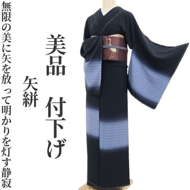美品 矢絣 着物 正絹 仕付け糸付“無限の美に矢を放って明かりを灯す静寂”付下げ 4591