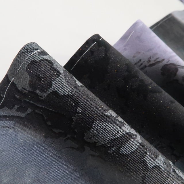 こちらのお着物は、ダルトーンの彩色で染めの美しさにフォーカスした洗練の創作柄を込めております。斬新にして視線を釘付けにするその意匠性は日展作家ならでは…内に秘めた華とともに誰をも惹きつける創作着物の奥深さを存分にお楽しみいただけことでしょう。
