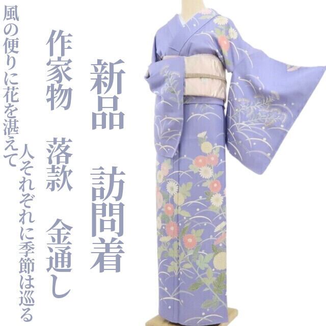 新品 落款 金通し 着物 正絹“風の便りに花を湛えて人それぞれに季節は巡る”仕付け糸付 作家物 訪問着 4665