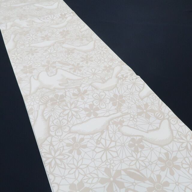 帯全体に柄が入り、贅沢な全通帯は、柄の出方を気にせず、体型も問わずに締めることができ、着付けに自信がない方にも優しい融通の利く帯。