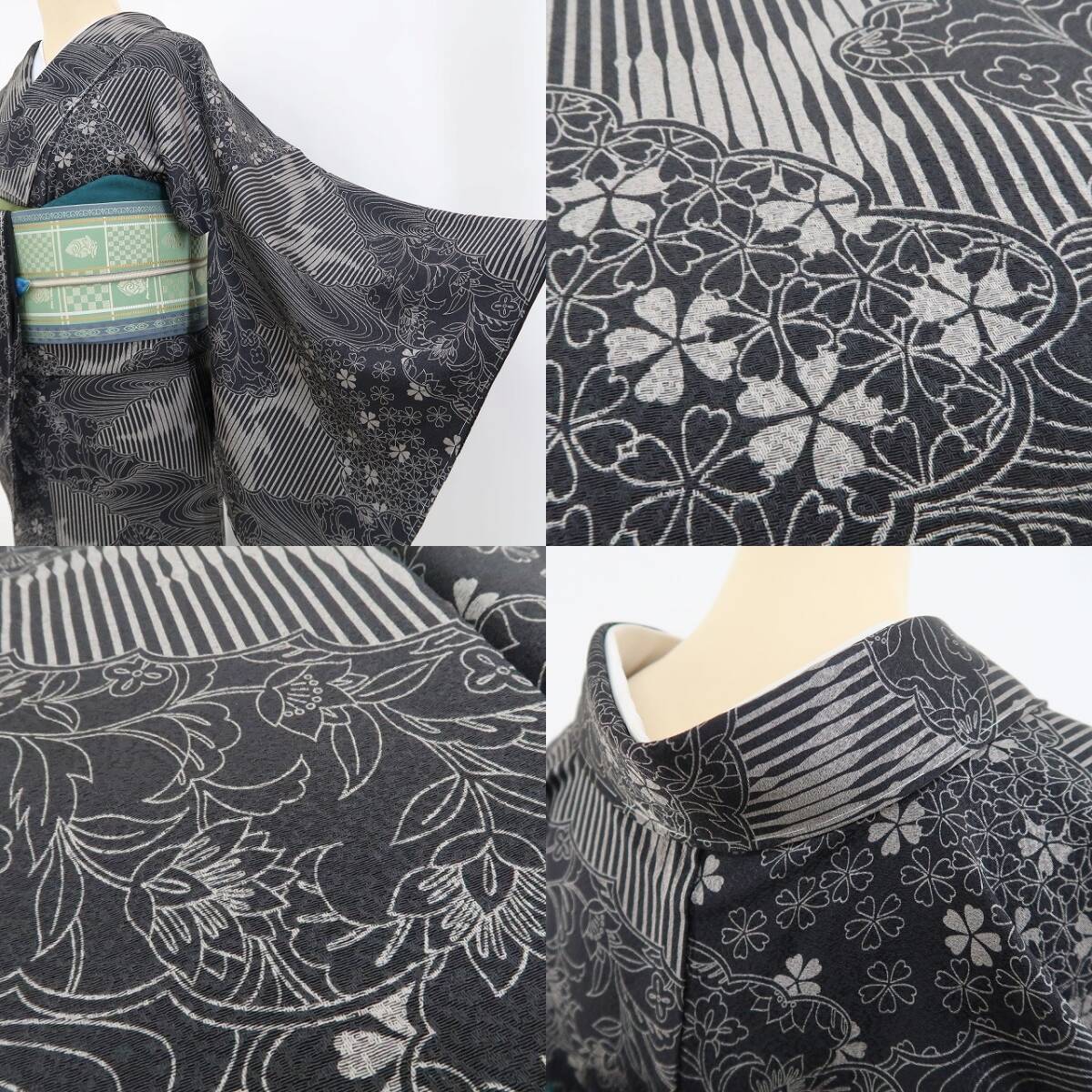 こちらのお着物は、ダークトーンの彩色で創作着物の奥行にフォーカスした斬新な意匠を込めております。強めのインパクトながら程よい主張でモダンな個性を表現するのに最適なお召し物です。