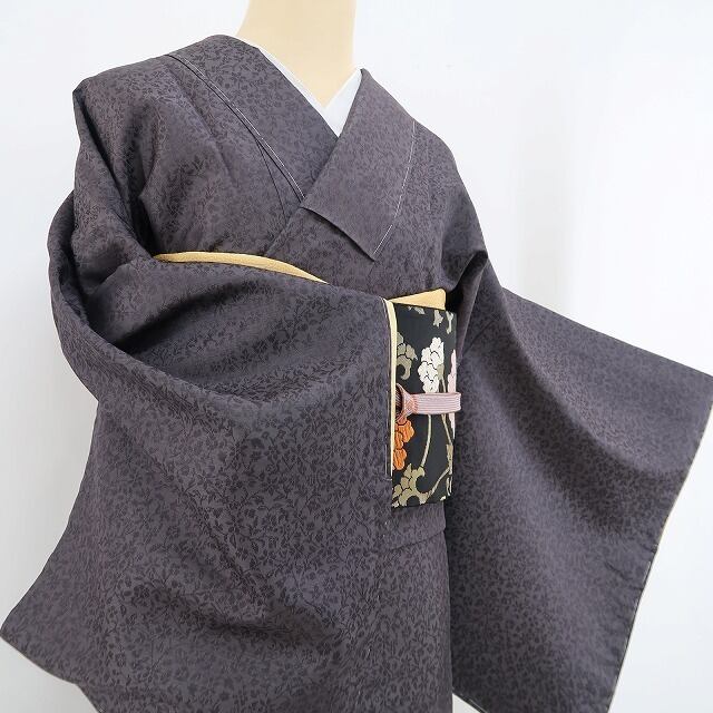 全体的には大人の艶を感じさせてくれるモダンエレガントなひと品、幅広いコーディネートをお楽しみいただける装い易さも魅力、それは人それぞれに想いを感じながら創作着物に袖を通す至福のひと時、これからの季節の装いに是非どうぞ!