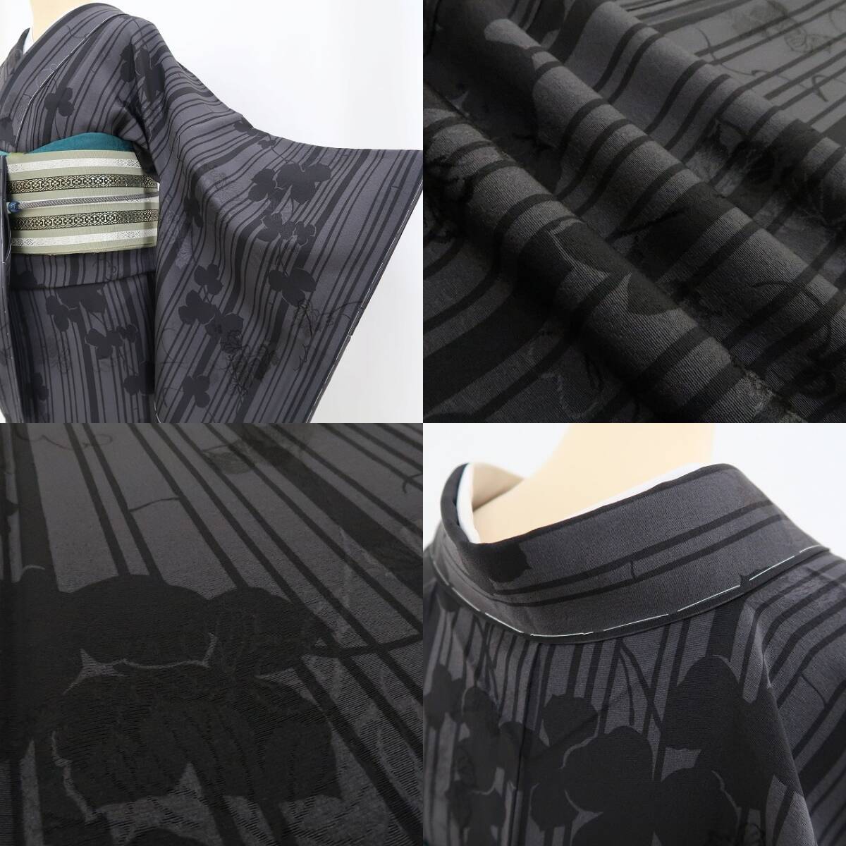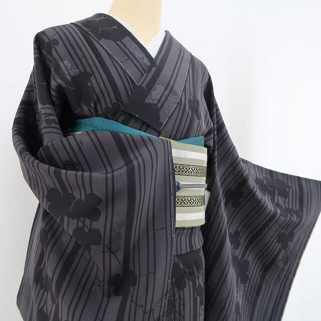 “影絵のように静かに風情を歌う縦縞と蔦”素敵な帯で色を差しながらお楽しみください。