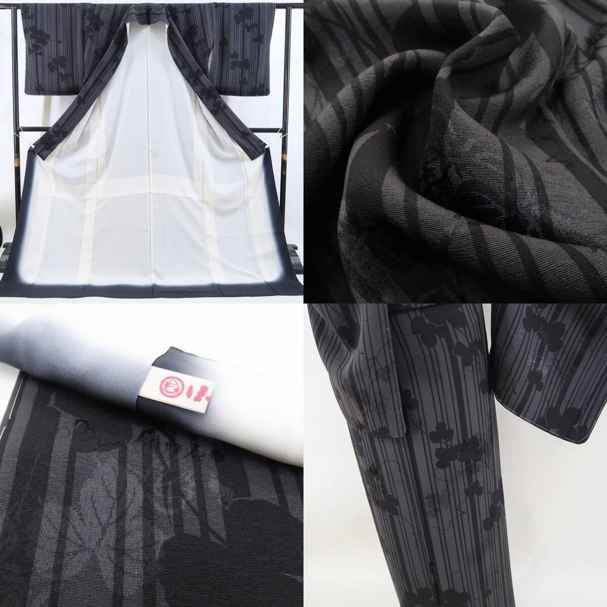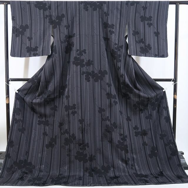 新品 ほていや謹製 蔦 縦縞 着物 正絹 仕付け糸付“影絵のように静かに風情を歌う縦縞と蔦”小紋 4711