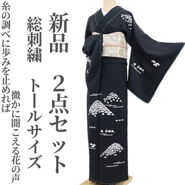 新品 2点セット 総刺繍 着物 正絹“糸の調べに歩みを止めれば聞こえる花の声”仕付け糸付 トールサイズ 訪問着・長襦袢 4728