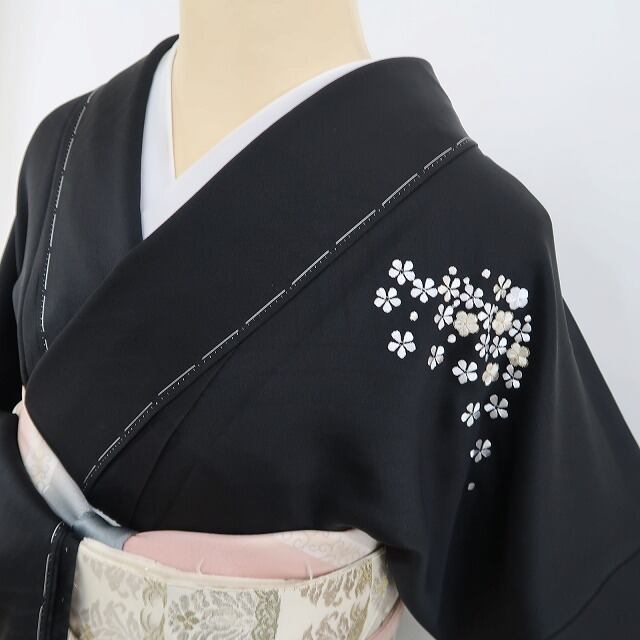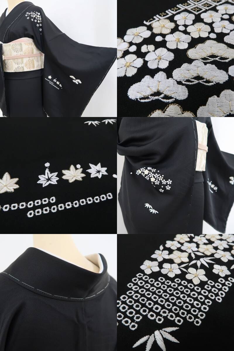 《着物》 シックな黒の色地に描き込まれた小花や和柄の創作デザイン、それは滑らかな正絹の地に細やかに縫い上げられた精微な刺繍の美しさ、正に貴女に届く“糸の調べと花の声”、総刺繍の贅なれども嫌みのない上品な艶…奥深い大人の装いがお楽しみいただける個性派着物です。