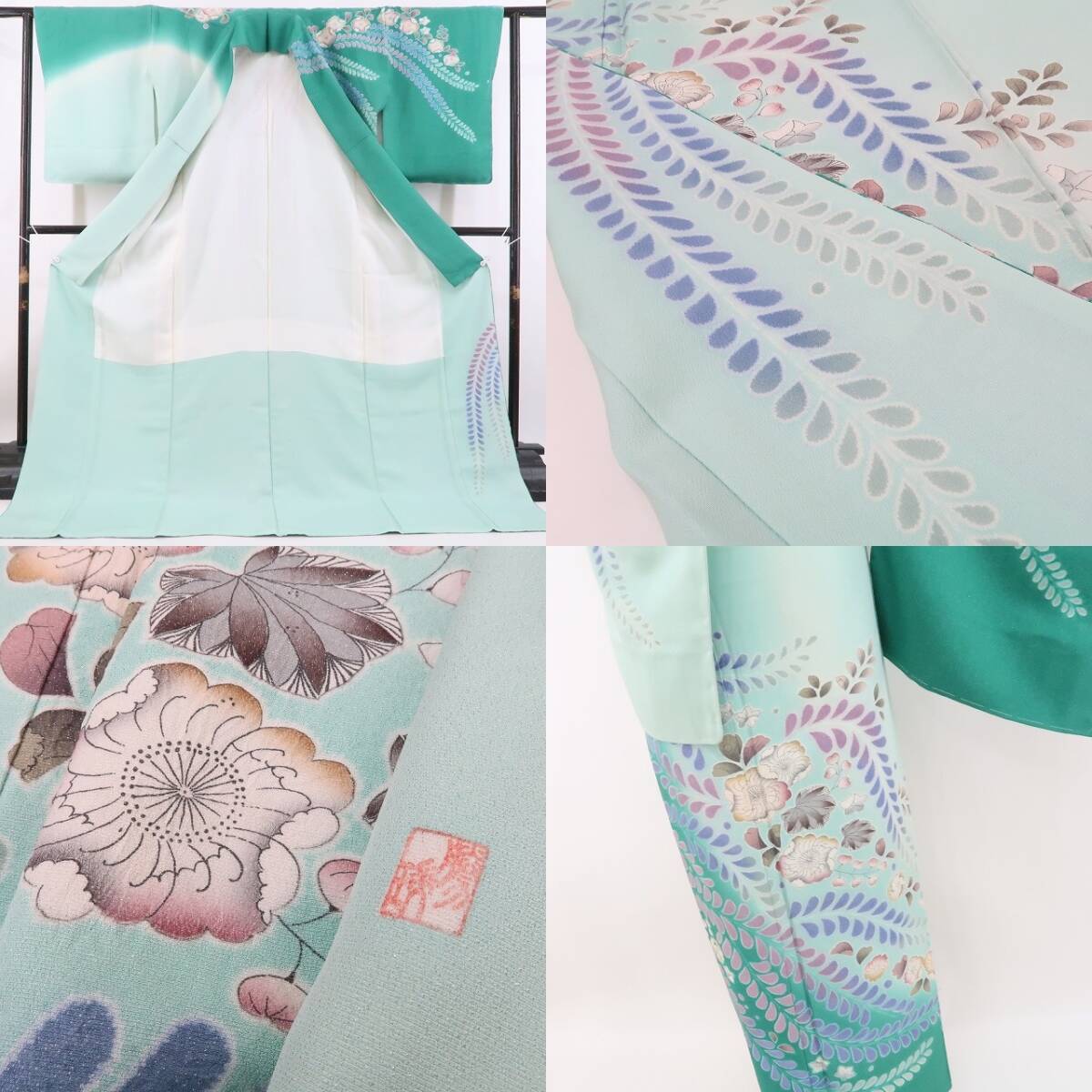 新品 辻ヶ花 落款 銀通し 着物 正絹 仕付け糸付 作家物“夢のように波打つ辻が花”訪問着 4793
