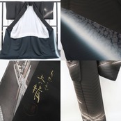 落ち着いた黒茶色の濃淡に描き込まれたアブストラクトなモダンデザイン、巧みな構図で浮かび上がるその表情は“自然の恵みを今に伝える創作の真心”そのもの、小堀和装が貴女に贈る新たな提案、正に“土の精”に息づく創作への深い想いが込められています。