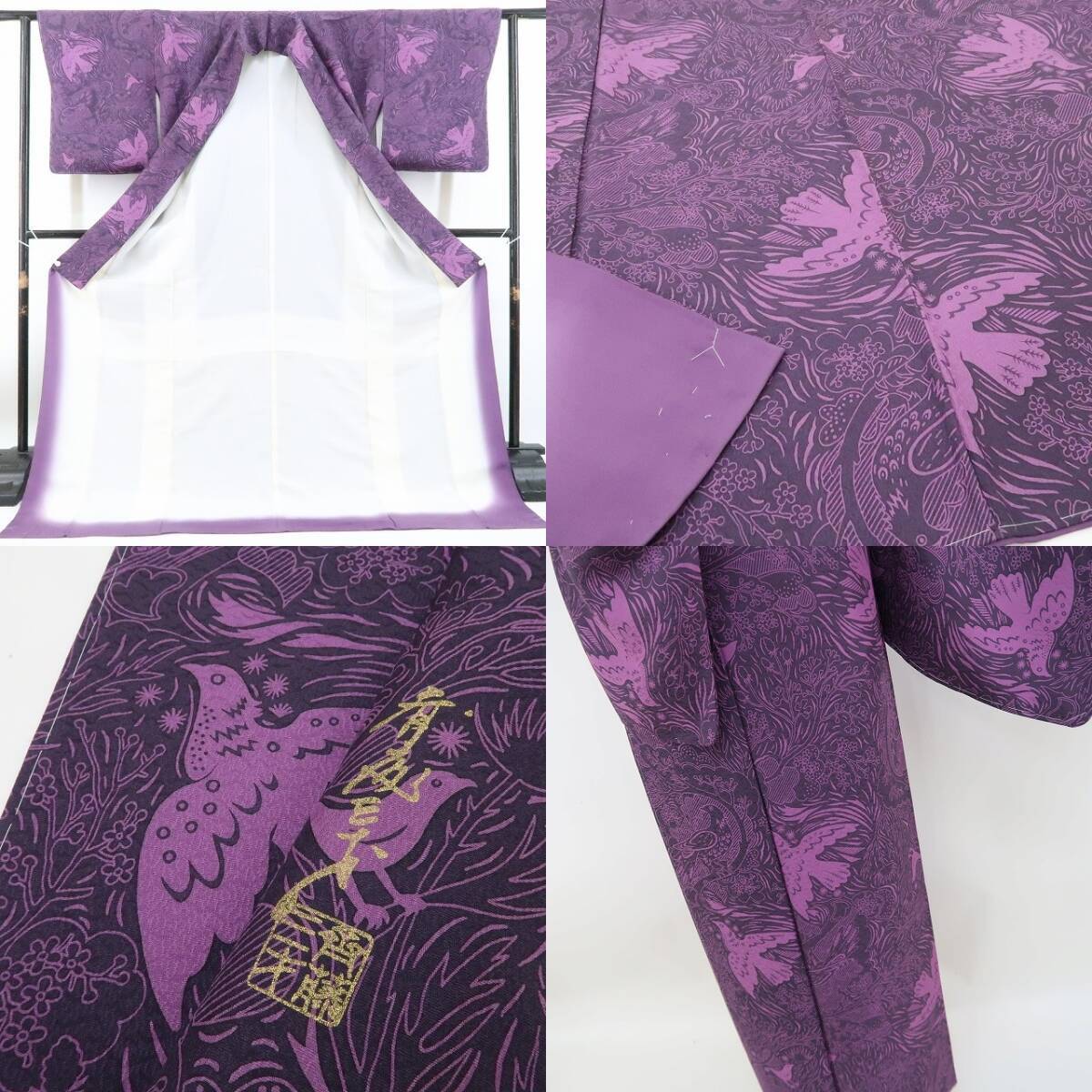 新品 斉藤三才 落款 着物“三才の飛翔鳥…見知らぬ世界の秘密に迫る”正絹 仕付け糸付 小紋 4819