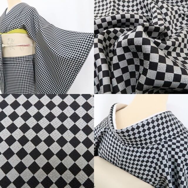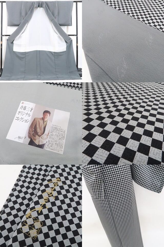 新品 斉藤三才 落款 ダイヤ柄 着物“モノトーンの誘惑…ありそうでない個性”正絹 仕付け糸付 小紋 4852