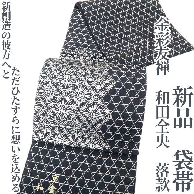 新品 金彩友禅 和田全央 落款“創造の彼方へと…ただひたすらに想いを込める”着物 正絹 袋帯 4864