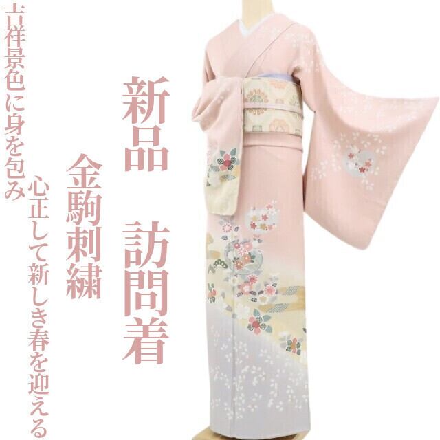 新品 金駒刺繍 着物“吉祥景色に身を包み心正して新しき春を迎える”正絹 仕付け糸付 訪問着 4870