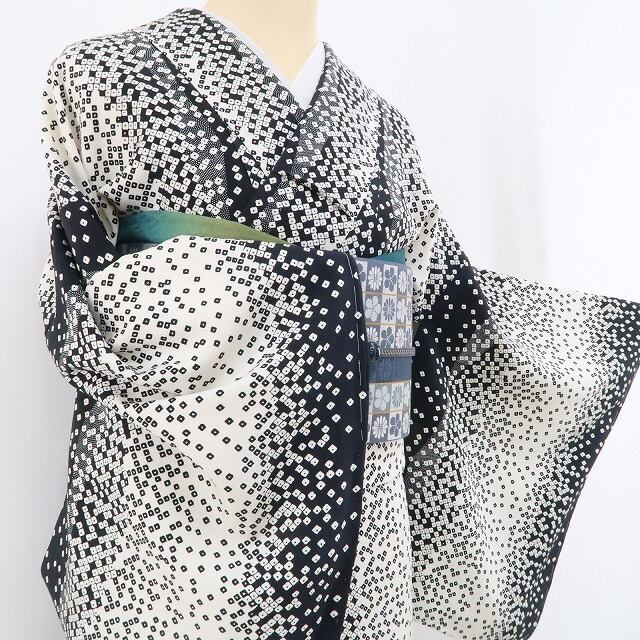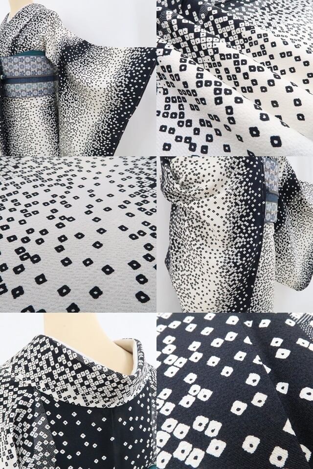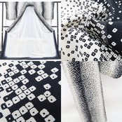こちらのお着物は、モノトーンの彩色で意匠の美しさを引き立てるデザイン性の高い絞り柄を込めております。お洒落小紋に潜むハイセンスな個性美、装いの満足度を叶えて…季節の装いにぴったり!