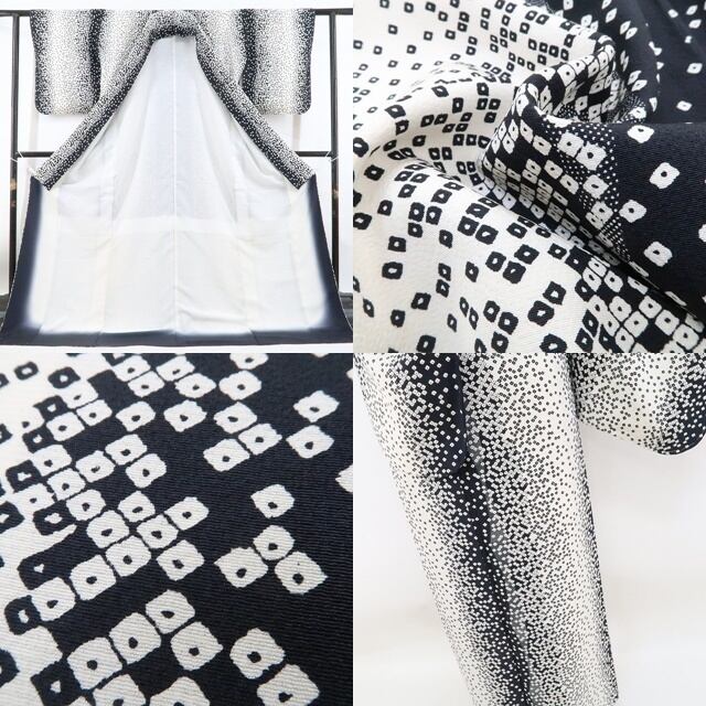 新品 モノトーン 縦縞 絞り柄 着物“モノトーンの誘惑!こだわり抜いて自分ファースト!”正絹 仕付け糸付 小紋 4873