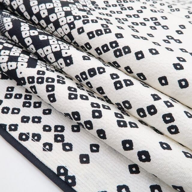 絞りは布地を糸で括ったり器具で挟んだりして柄を出す“絞り染め”技法、ふんわりとした柔らかさが特徴で外見的には丸みを帯びた優しい印象を与えてくれます。