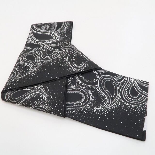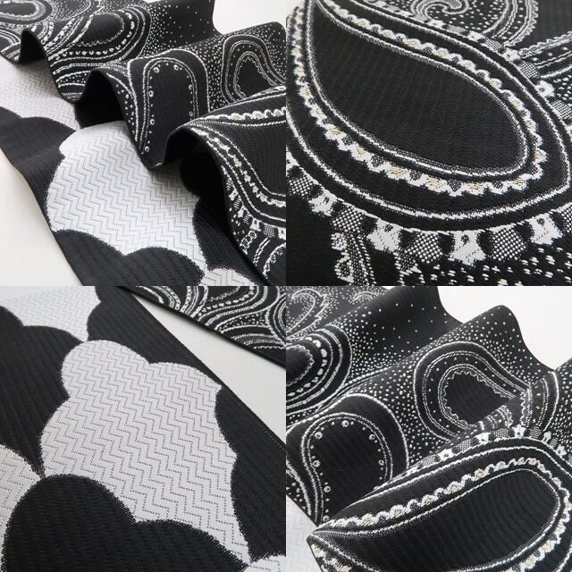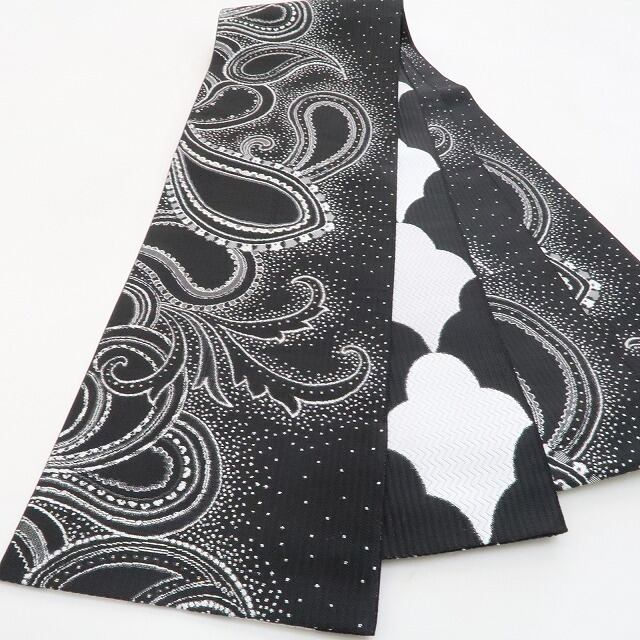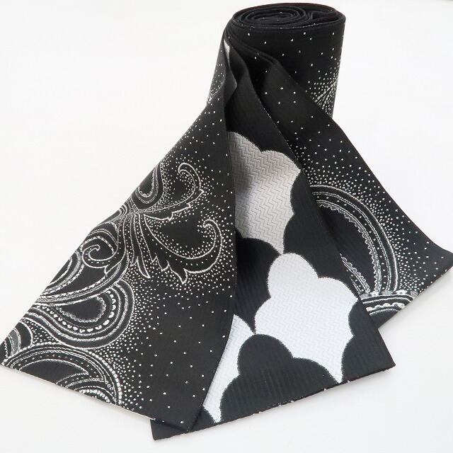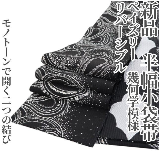 新品 リバーシブル ペイズリー 幾何学模様 着物 浴衣 正絹“モノトーンで開く二つの結び”半幅小袋帯 4882