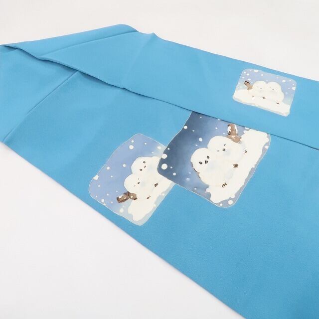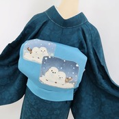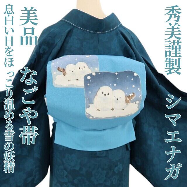 美品 秀美謹製 BANKAN シマエナガ 着物 正絹“息白い日をほっこり温める雪の妖精”なごや帯 4902