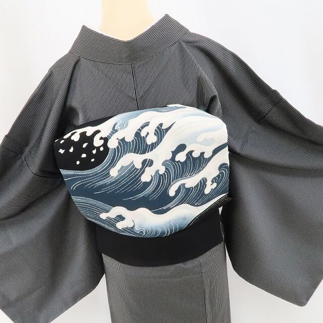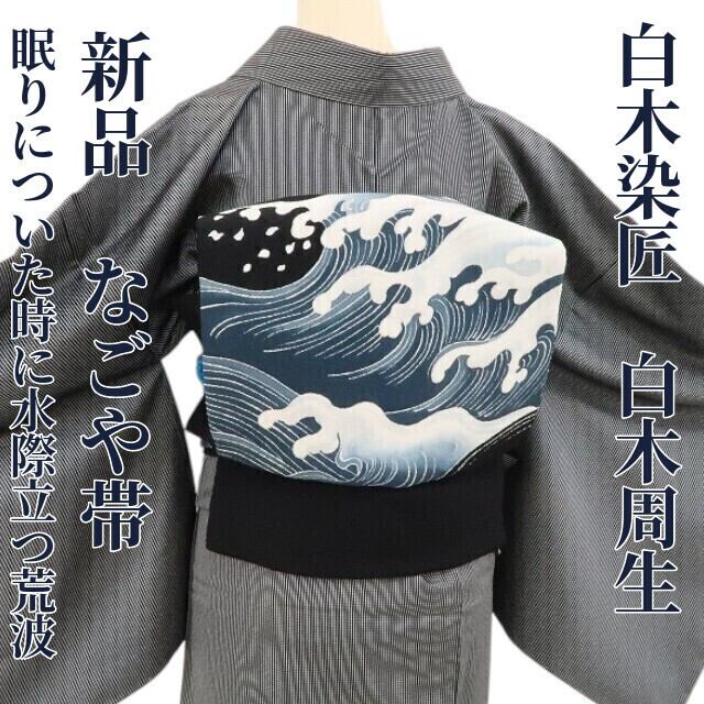 新品 白木染匠 白木周生 お仕立て上がり品 着物 正絹“眠りについた時に水際立つ荒波”なごや帯 4905
